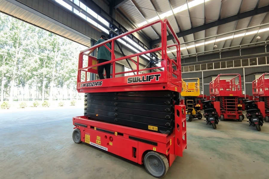 Based on these requirements, SWL recommended a 16m electric scissor lift, which is well suited for air conditioning maintenance scenarios. This model provides a stable working platform, allowing technicians to carry tools and perform repairs comfortably at height. At the same time, the electric drive system ensures low noise and zero emissions, making it ideal for indoor applications such as shopping malls, office buildings, and industrial facilities. The compact structure also allows the equipment to move through relatively narrow working areas without difficulty.